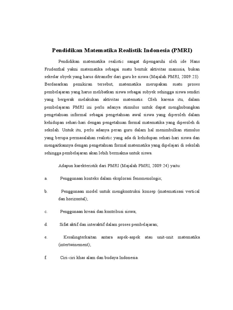 Makalah Pendidikan Matematika Realistik Indonesia Pmri