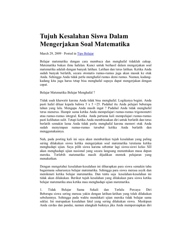 Tujuh Kesalahan Siswa Dalam Mengerjakan Soal Matematika