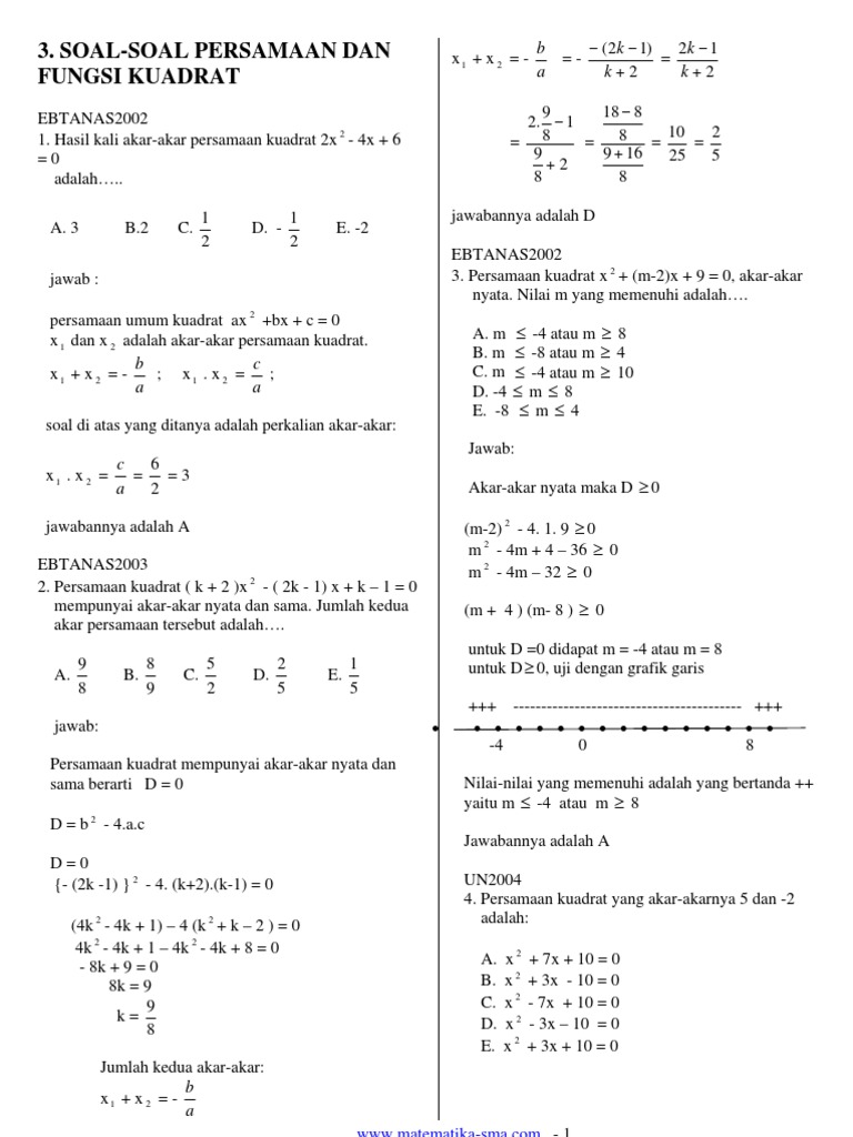 Contoh Soal Dan Pembahasan Persamaan Kuadrat Sma
