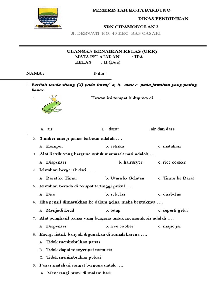 Contoh Soal Ukk Ipa Kelas 1 Sd Semester 2 Terbaru 2018 Tarbiyatul