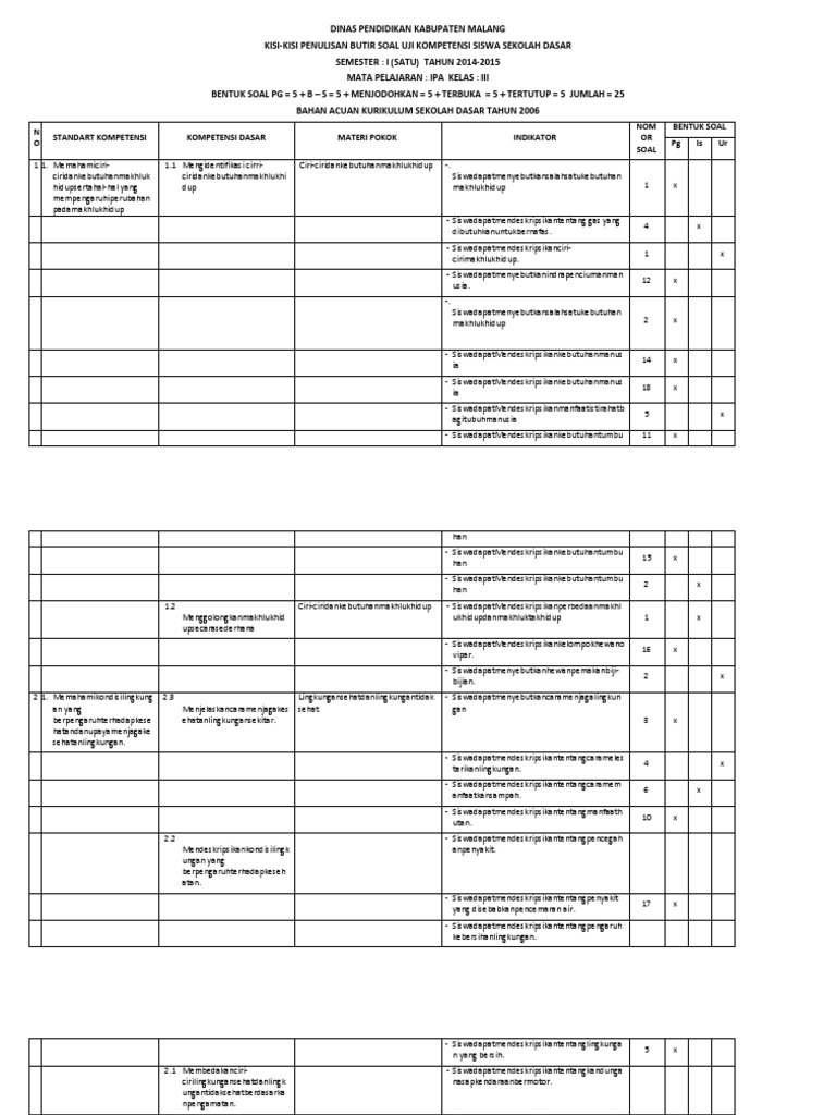 Kisi Kisi Soal Ipa Kelas 3 Docx