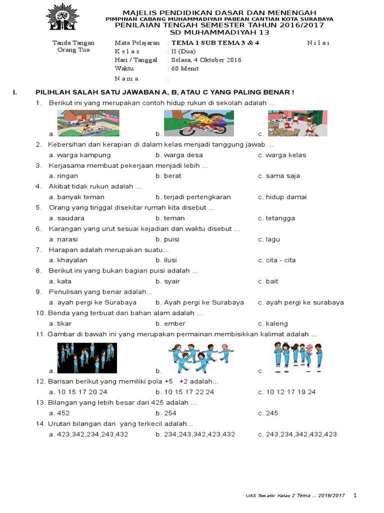 Soal Uts Pts Tema 1 Kelas 3 Semester 1 Kurikulum 2013 Revisi 2018