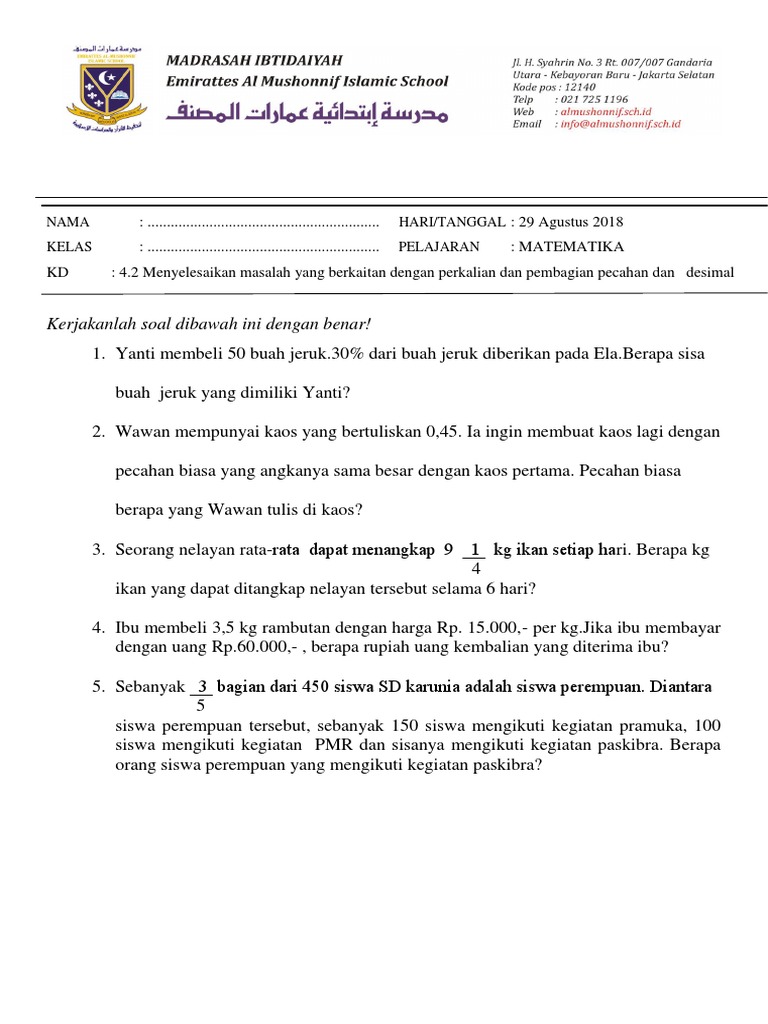 Kumpulan Soal Uts Sd Mi 2017 Kelas 1 2 3 4 5 6 Lengkap